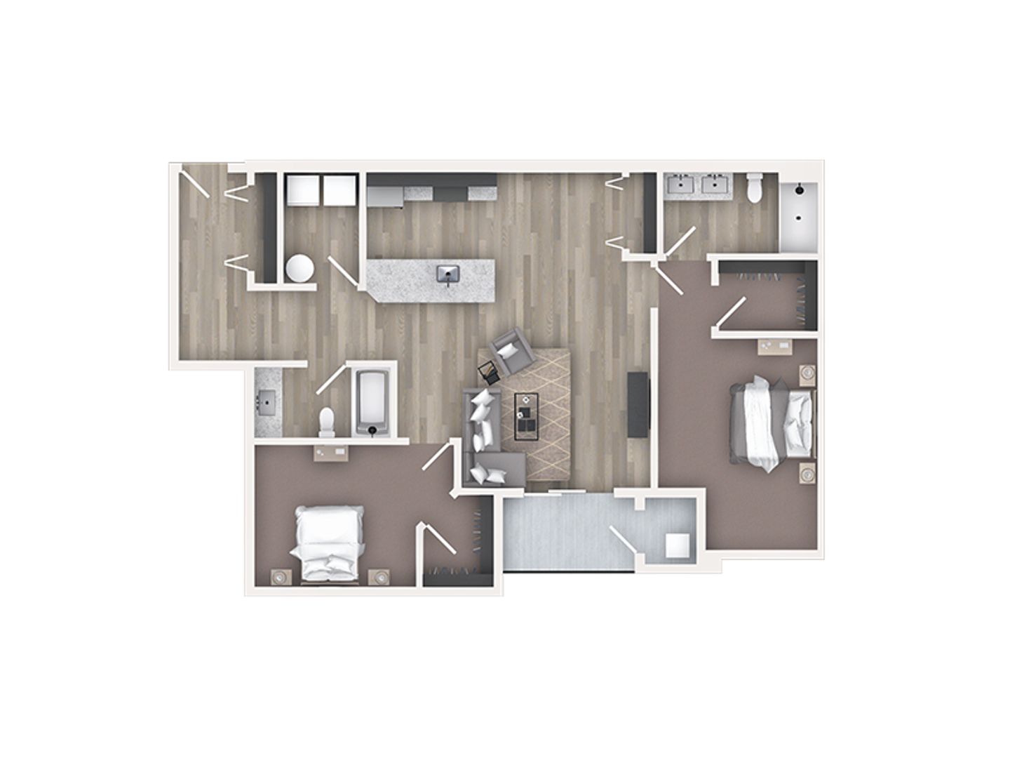 All apartment homes feature granite countertops in both the kitchen and bathrooms, shiny stainless-steel appliances, and their own HVAC system for heating and cooling. Plus, you’ll love the window blinds for privacy! Each apartment also features spacious walk-in laundry rooms. This apartment includes laminate vinyl plank flooring in the common areas, with cozy carpet in the bedroom(s). The 2-bedroom, 2-bathroom layout features both a shower-tub combo and a walk-in shower for added convenance and choice. Conveniently located within walking distance of shops, grocery stores, restaurants, and bike trails.
