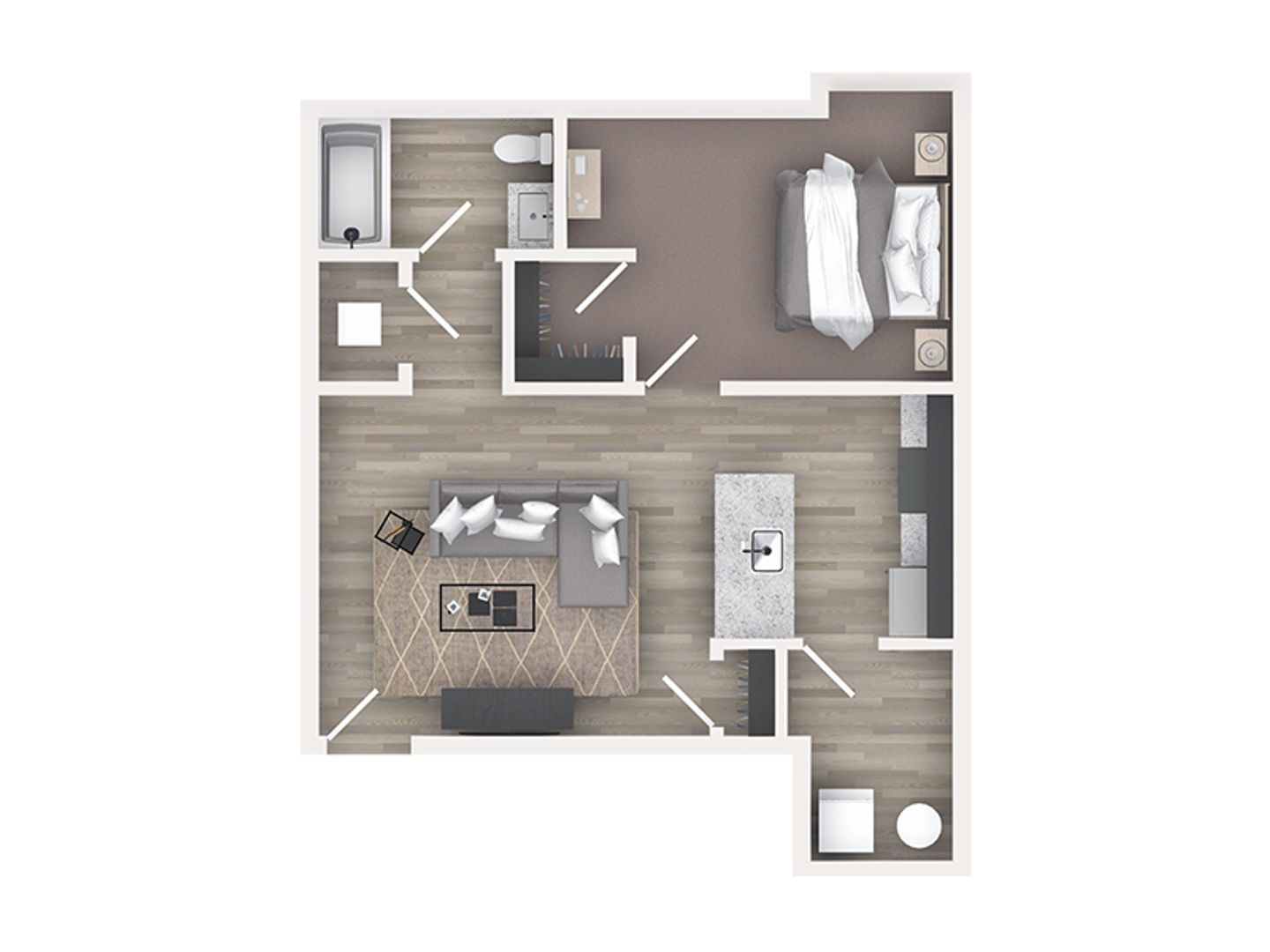 All apartment homes feature granite countertops in both the kitchen and bathrooms, shiny stainless-steel appliances, and their own HVAC system for heating and cooling. Plus, you’ll love the window blinds for privacy! Each apartment also features spacious walk-in laundry rooms. This apartment includes laminate vinyl plank flooring in the common areas, with cozy carpet in the bedroom(s). The 1-bedroom layout includes a modern walk-in shower for added convenience and comfort. Conveniently located within walking distance of shops, grocery stores, restaurants, and bike trails.
