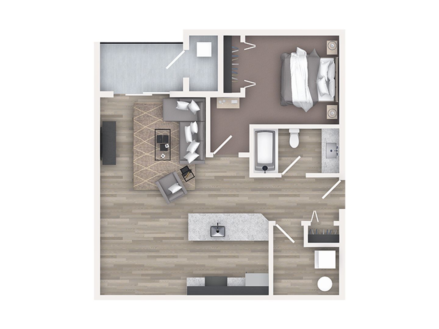 All apartment homes feature granite countertops in both the kitchen and bathrooms, shiny stainless-steel appliances, and their own HVAC system for heating and cooling. Plus, you’ll love the window blinds for privacy! Each apartment also features spacious walk-in laundry rooms. This apartment includes laminate vinyl plank flooring in the common areas, with cozy carpet in the bedroom(s). The 1-bedroom layout includes a modern walk-in shower for added convenience and comfort. Conveniently located within walking distance of shops, grocery stores, restaurants, and bike trails.